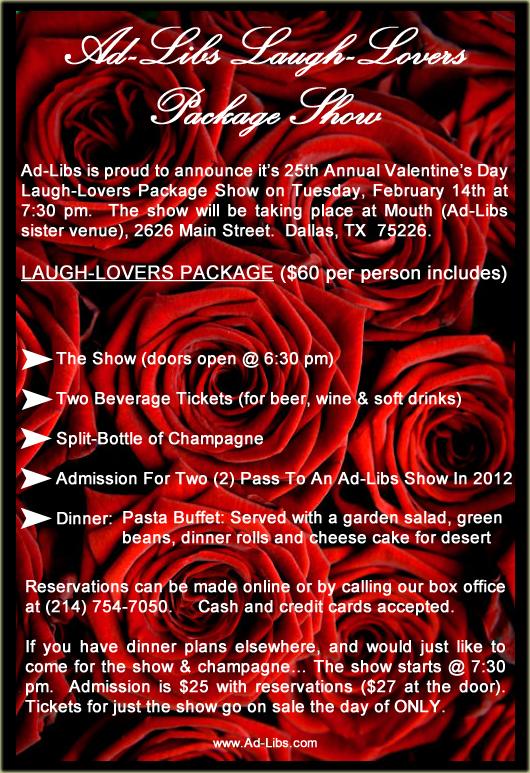 Ad-Libs perform weekly shows at our sister venue, Mouth ... located at 2626 Main Street in Dallas.